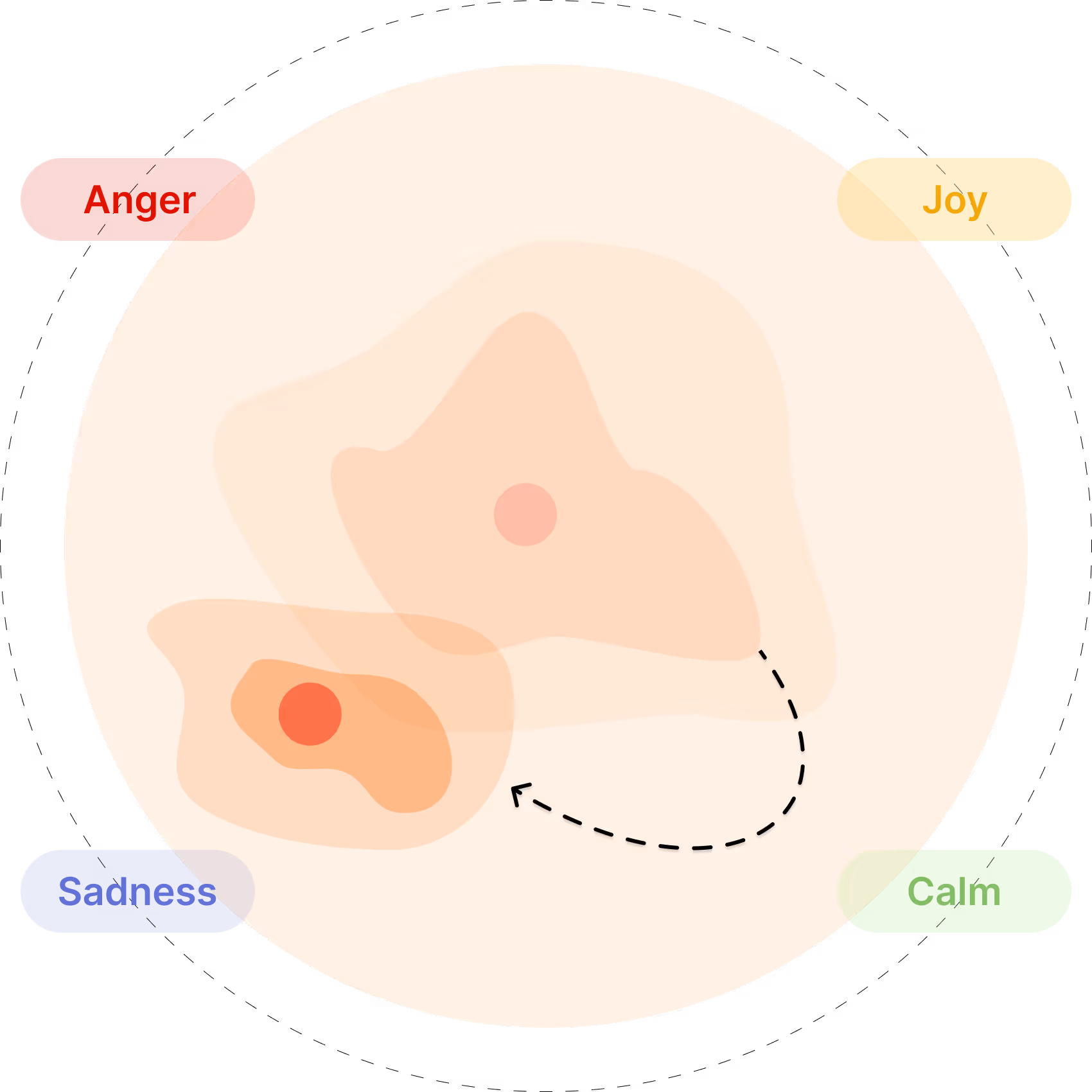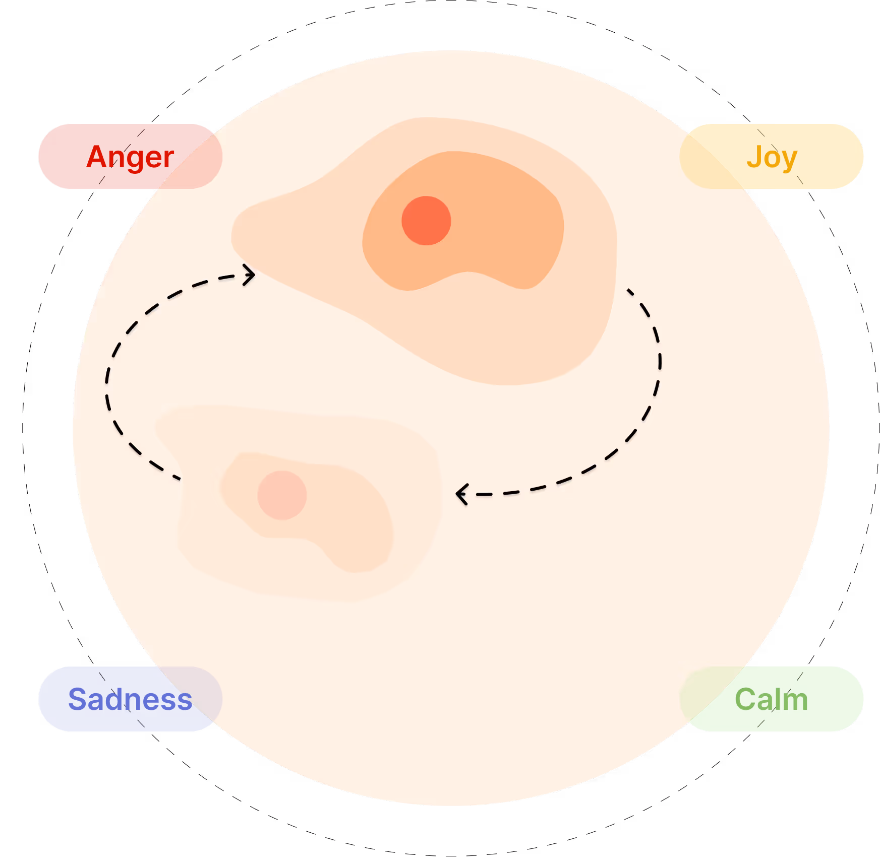 Using AI, our algorithms create an emotional heat map that summarizes a person's "emotional tone" throughout the day by accumulating the emotions detected.